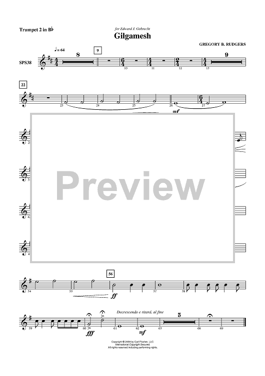 Digital Sheet Music for Gilgamesh - Trumpet 2 in B-flat by Gregory B. Rudgers scored for Symphonic Band; id:406413