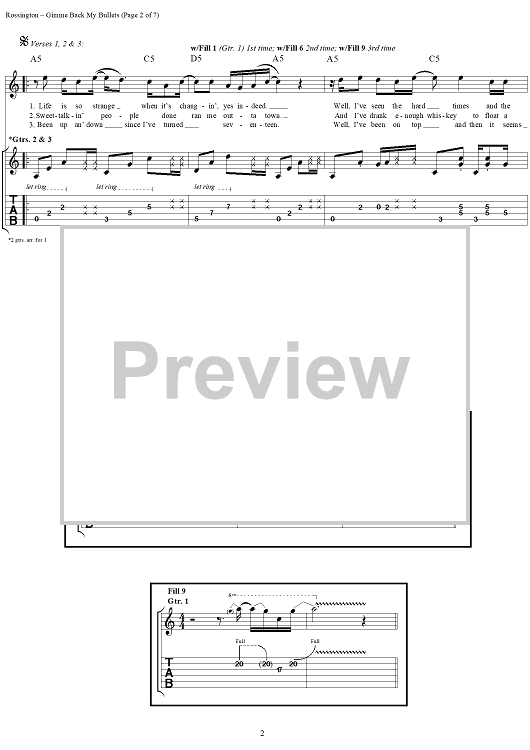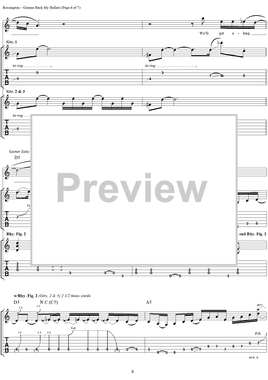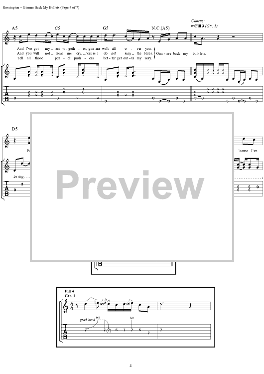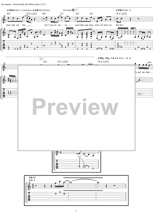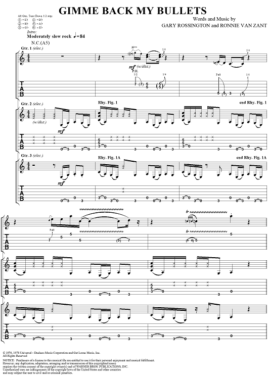 "Gimme Back My Bullets" Sheet Music by Lynyrd Skynyrd