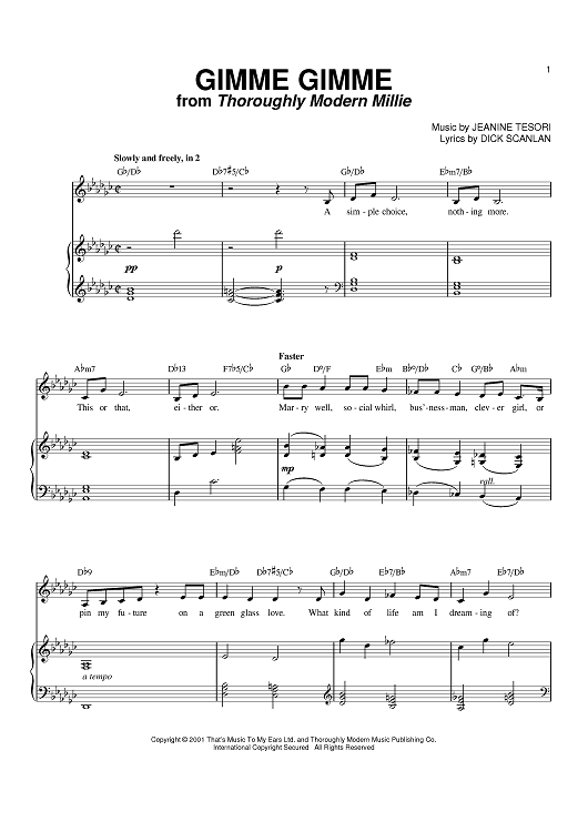 Digital Sheet Music for Gimme Gimme by Jeanine Tesori, Dick Scanlan scored for Piano/Vocal/Chords; id:387630