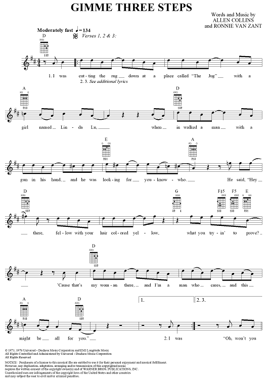 "Gimme Three Steps" Sheet Music by Lynyrd Skynyrd