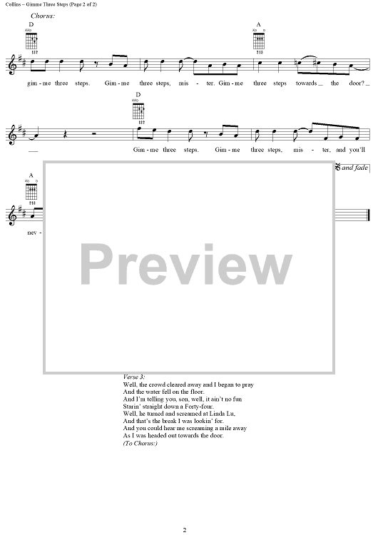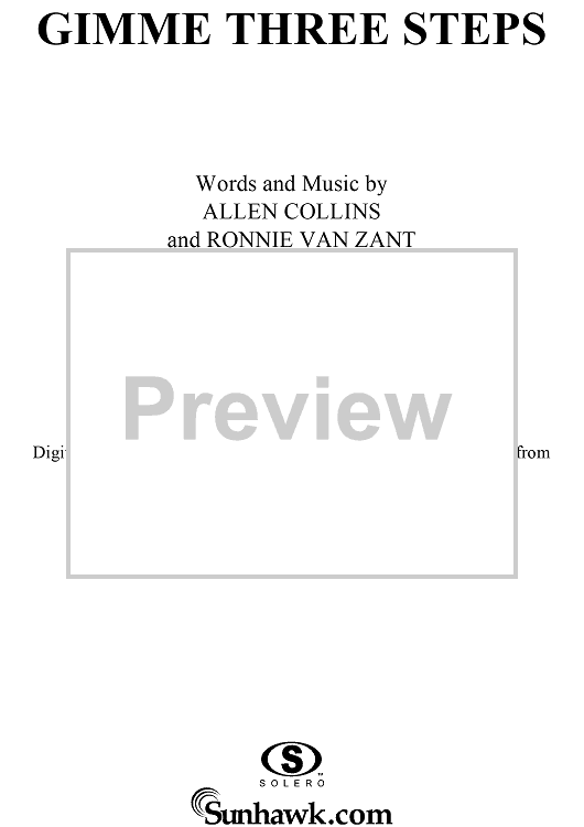 Digital Sheet Music for Gimme Three Steps by Lynyrd Skynyrd, Allen Collins, Ronnie Van Zant scored for Easy Guitar/Vocal; id:283520