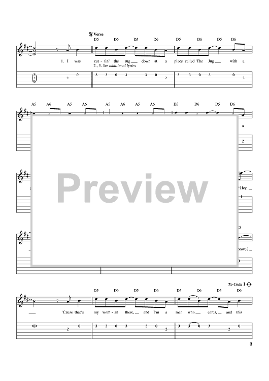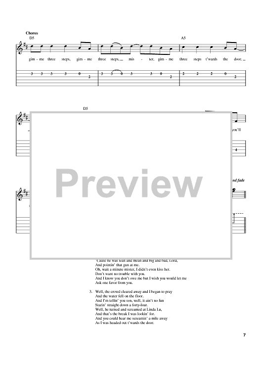 Digital Sheet Music for Gimme Three Steps by Lynyrd Skynyrd, Allen Collins, Ronnie Van Zant scored for Easy Guitar Tab; id:393978