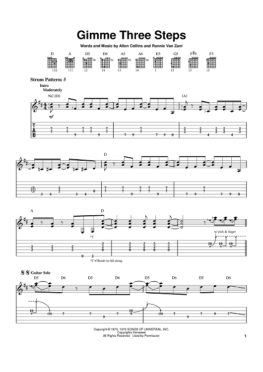 "Gimme Three Steps" Sheet Music by Lynyrd Skynyrd