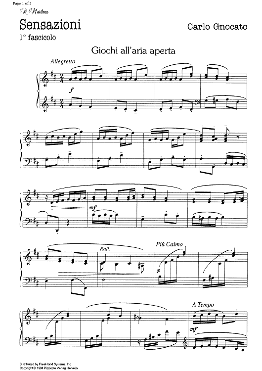 Digital Sheet Music for Giochi all'aria aperta by Carlo Gnocato scored for Piano Solo; id:335080