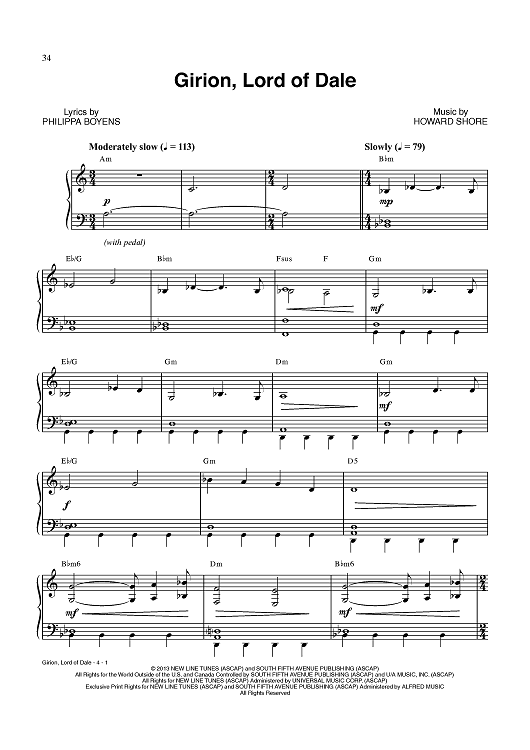 "Girion, Lord Of Dale" Sheet Music by Howard Shore