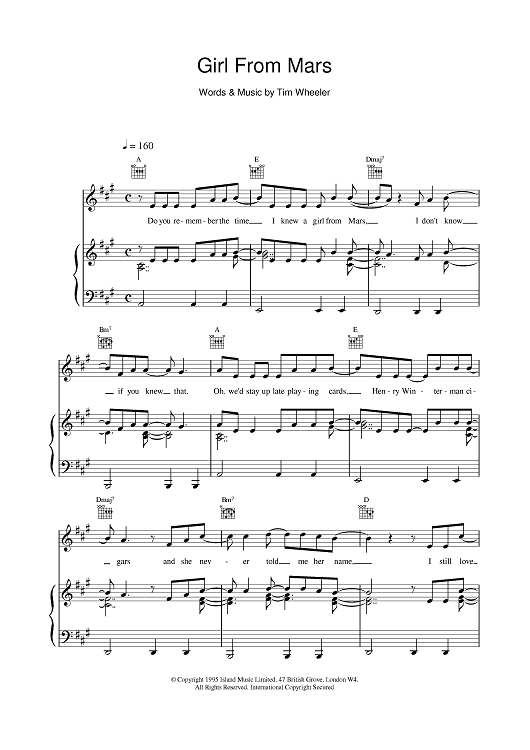 Digital Sheet Music for Girl From Mars by Ash, Tim Wheeler scored for Piano/Vocal/Chords; id:379748