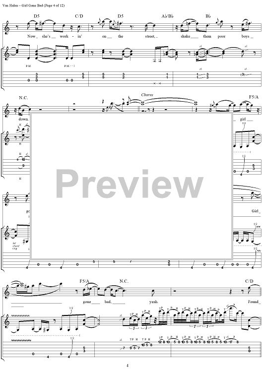 "Girl Gone Bad" Sheet Music by Van Halen