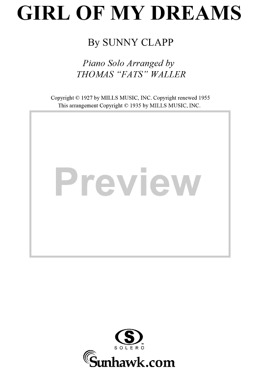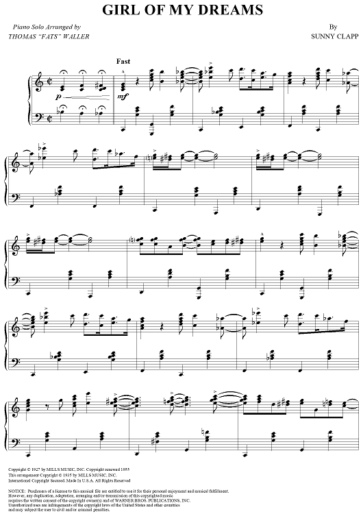 Digital Sheet Music for Girl Of My Dreams by Fats Waller, Sunny Clapp scored for Piano Solo; id:116362