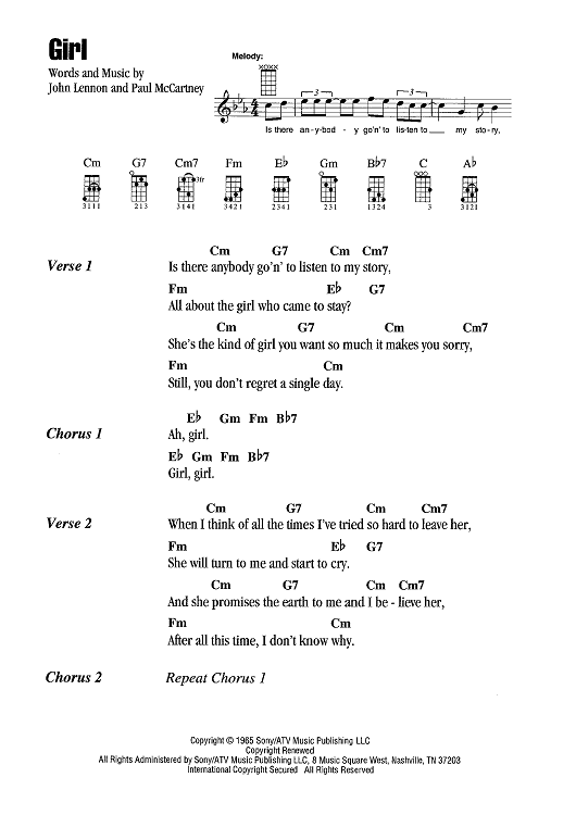 Digital Sheet Music for Girl by Paul McCartney, The Beatles, John Lennon scored for Ukulele/Vocal; id:466353
