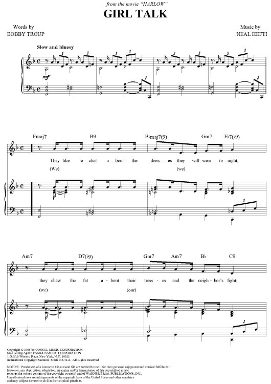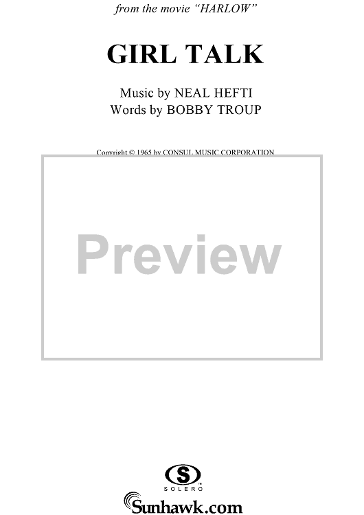 Digital Sheet Music for Girl Talk by Tony Bennett, Neal Hefti, Bobby Troup scored for Piano/Vocal/Chords; id:267378