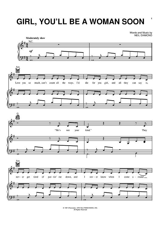 "Girl, You'll Be A Woman Soon" Sheet Music by Neil Diamond