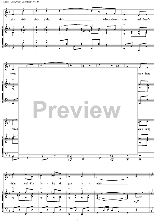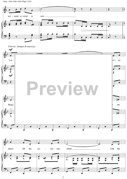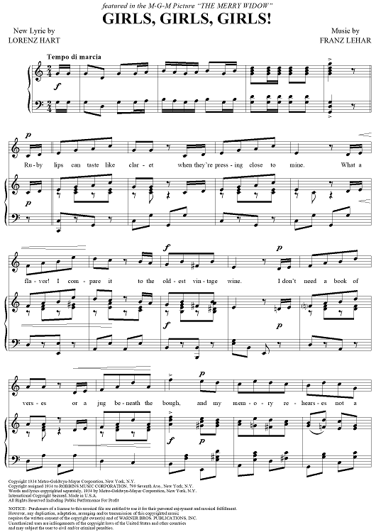 Digital Sheet Music for Girls, Girls, Girls! by Lorenz Hart, Franz Lehár scored for Piano/Vocal; id:356030