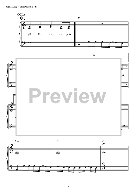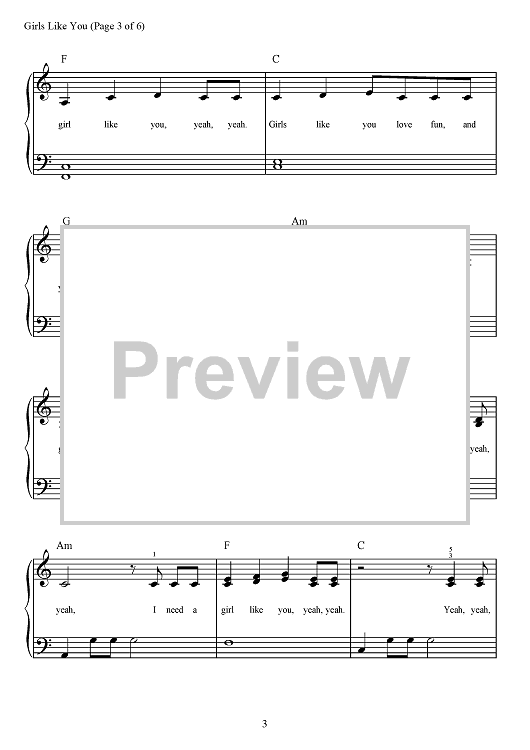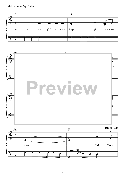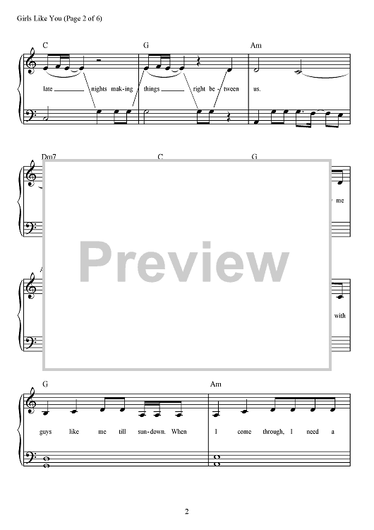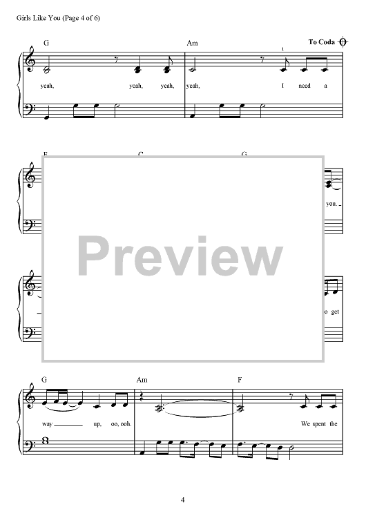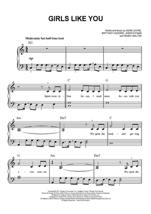 Digital Sheet Music for Girls Like You by Adam Levine, Maroon 5, Jason Evigan, Henry Russell Walter, Brittany Hazzard scored for Easy Piano/Vocal/Chords; id:466840