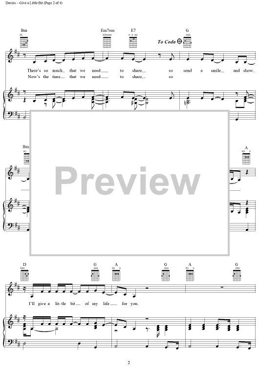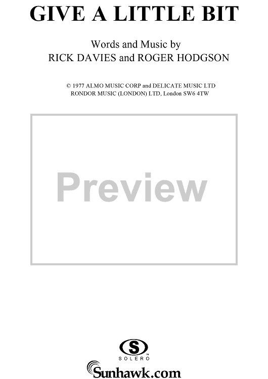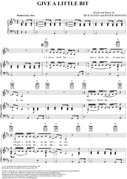 Digital Sheet Music for Give A Little Bit by Rick Davies, Roger Hodgson, Supertramp scored for Piano/Vocal/Chords; id:112641