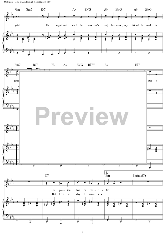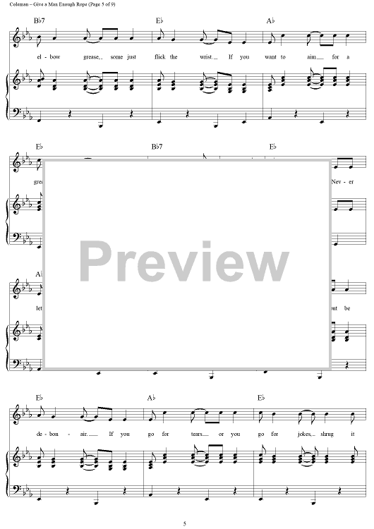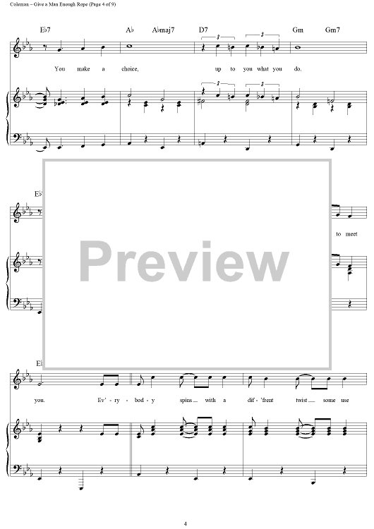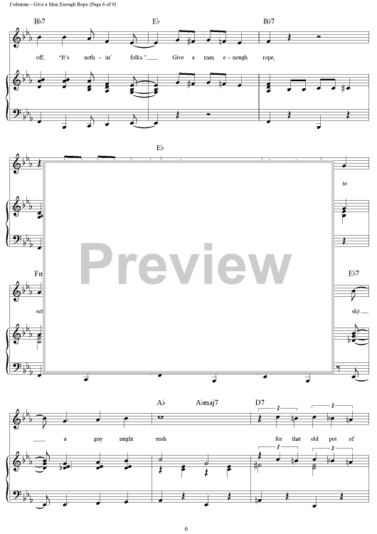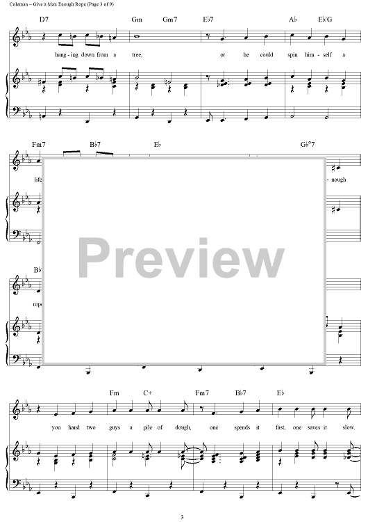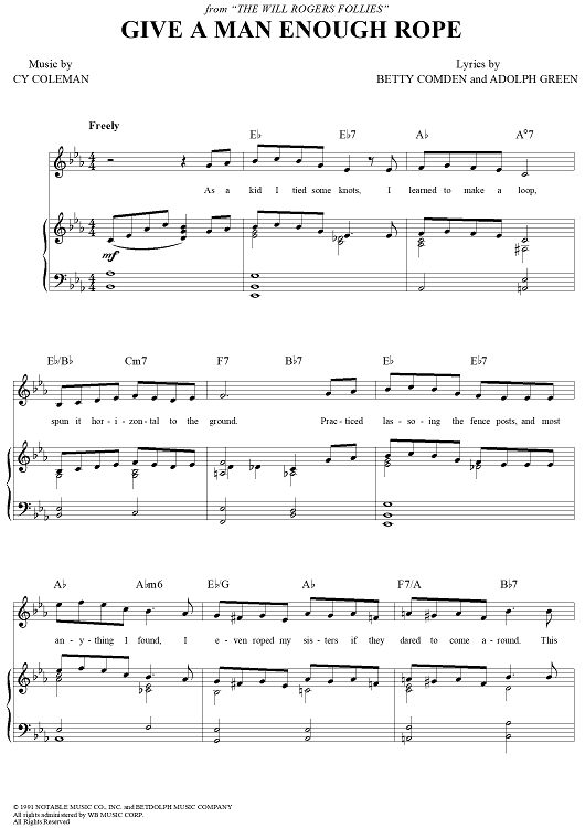 Digital Sheet Music for Give a Man Enough Rope by Cy Coleman, Betty Comden, Adolph Green scored for Piano/Vocal/Chords; id:116283