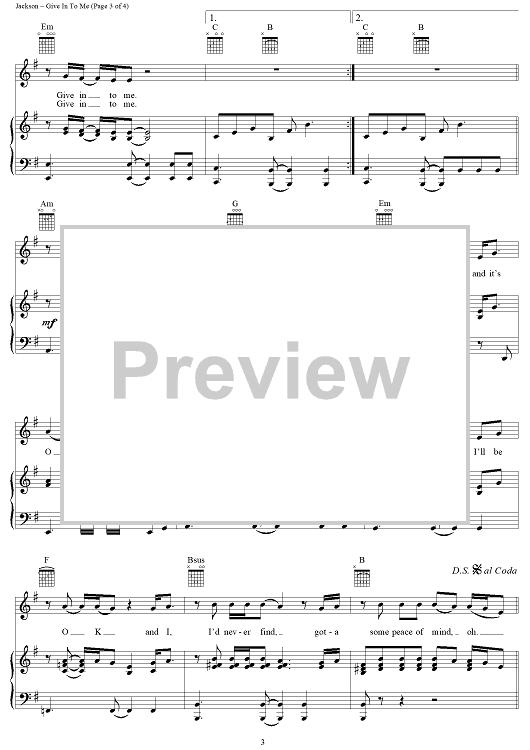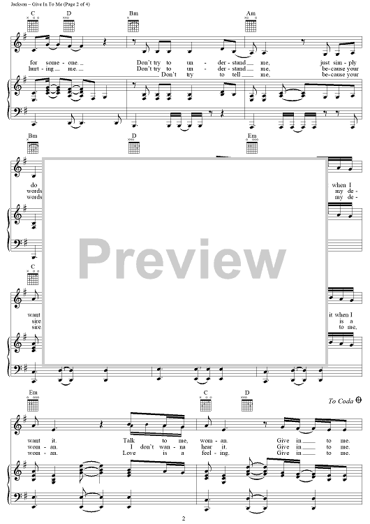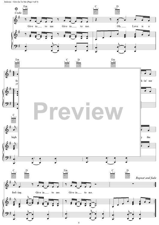 Digital Sheet Music for Give In To Me by Michael Jackson, Bill Bottrell scored for Piano/Vocal/Chords; id:119699