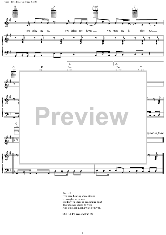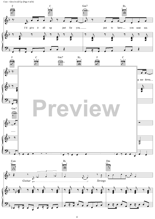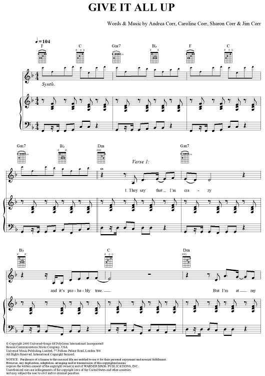 Digital Sheet Music for Give It All Up by The Corrs, Derek Jones, Sharon Corr, Caroline Corr, Andrea Corr, Jim Corr scored for Piano/Vocal/Chords; id:287332