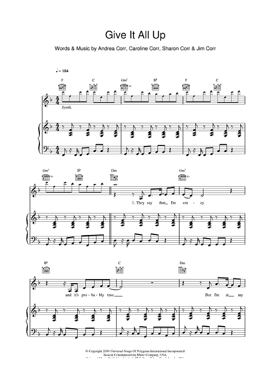 "Give It All Up" Sheet Music by The Corrs