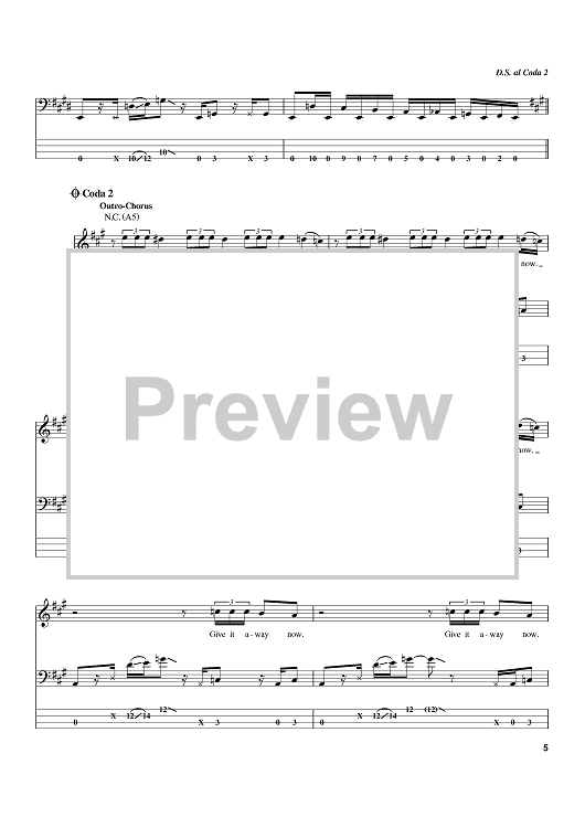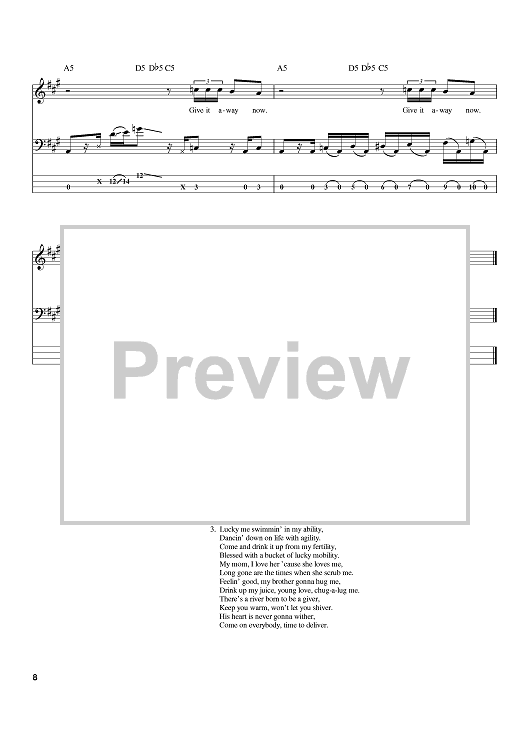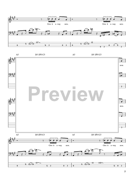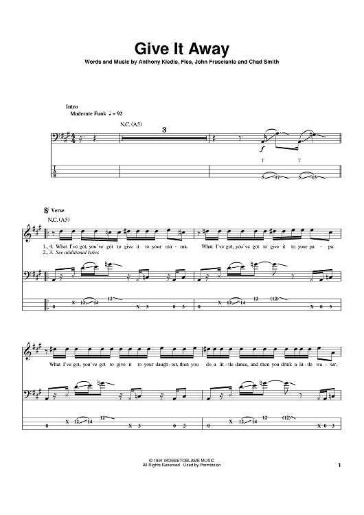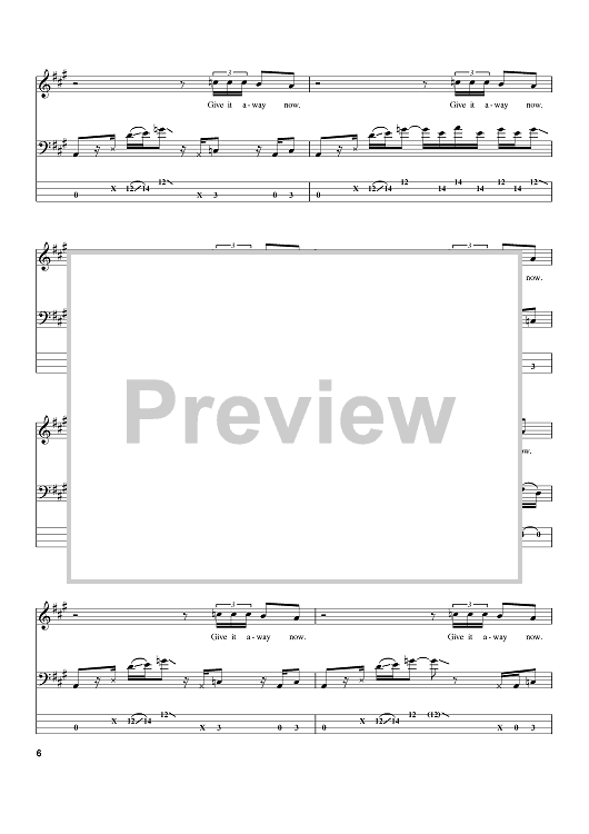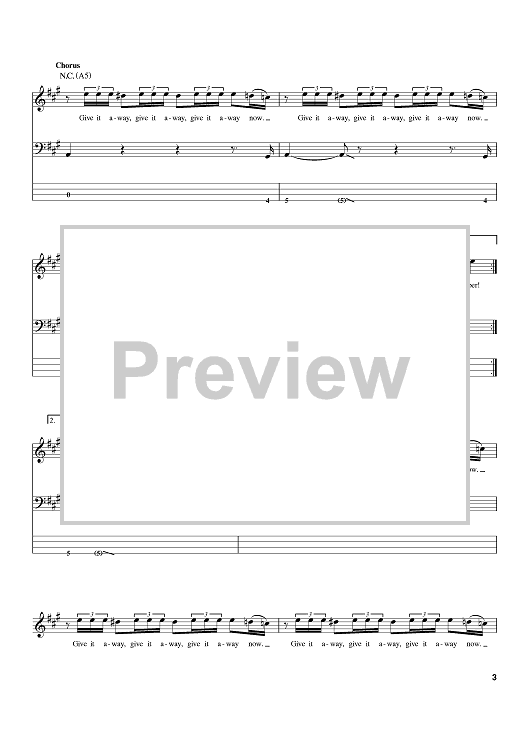 Digital Sheet Music for Give It Away by Flea, John Frusciante, Anthony Kiedis, Red Hot Chili Peppers, Chad Smith scored for Bass Tab; id:384367