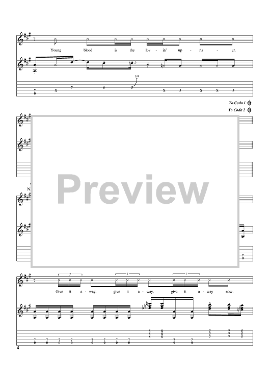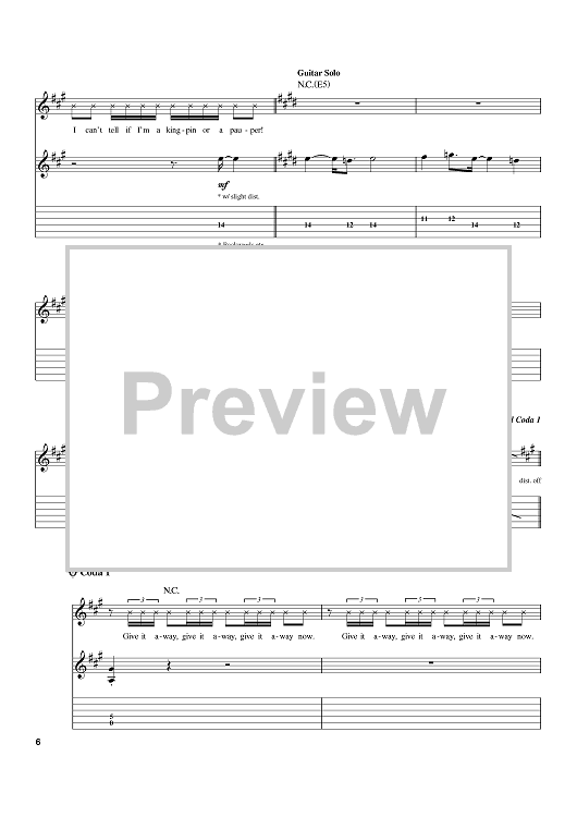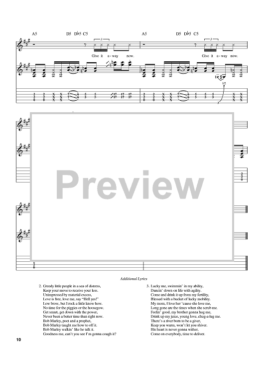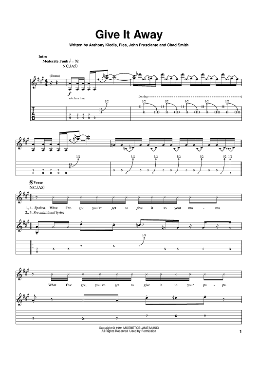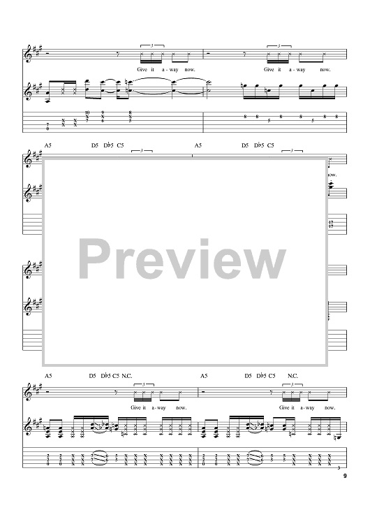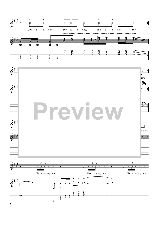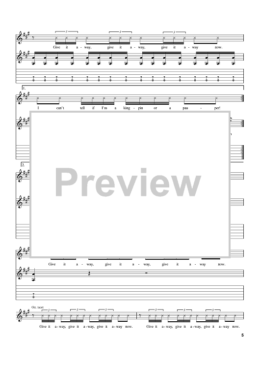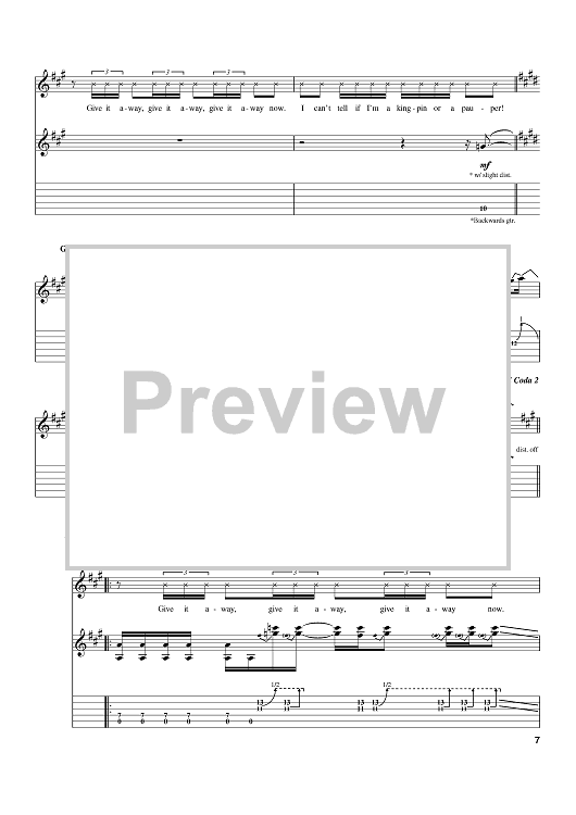 Digital Sheet Music for Give It Away by Flea, John Frusciante, Anthony Kiedis, Red Hot Chili Peppers, Chad Smith scored for Guitar Tab; id:401557