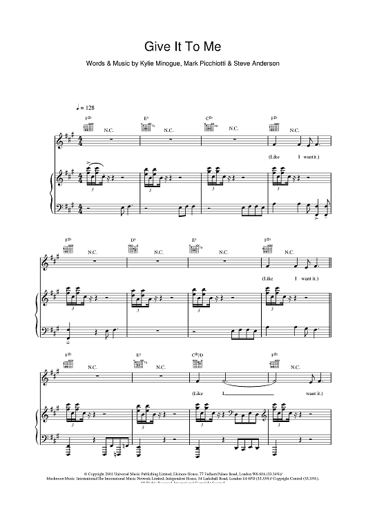 Digital Sheet Music for Give It To Me by Kylie Minogue, Steve Anderson, Mark Picchiotti scored for Piano/Vocal/Chords; id:380148