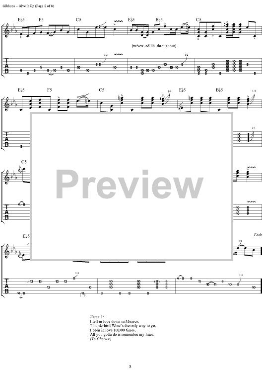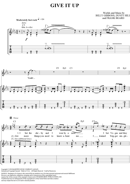 "Give It Up" Sheet Music by ZZ Top