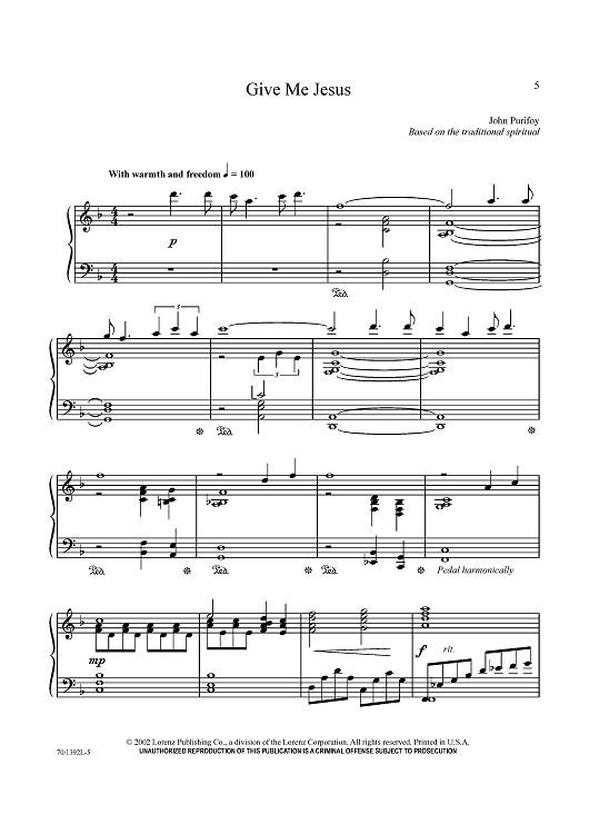 Digital Sheet Music for Give Me Jesus by Traditional Spiritual, John Purifoy scored for Piano Solo; id:433570