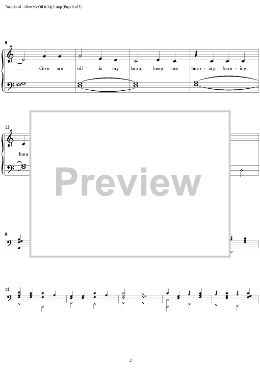 "Give Me Oil in My Lamp" Sheet Music by Traditional