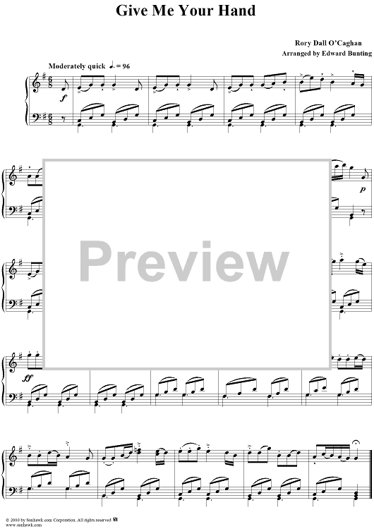 Digital Sheet Music for Give Me Your Hand by Edward Bunting, Rory Dall O'Cahan scored for Piano Solo; id:234877
