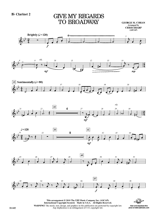 Digital Sheet Music for Give My Regards to Broadway - Bb Clarinet 2 by George M Cohan, Chris Sharp scored for Young Band; id:415414
