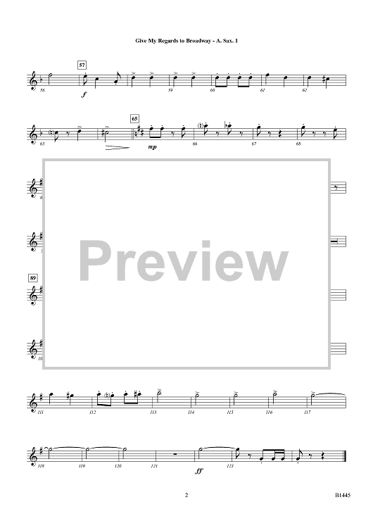 "Give My Regards to Broadway - Eb Alto Sax 1" Sheet Music by George M Cohan
