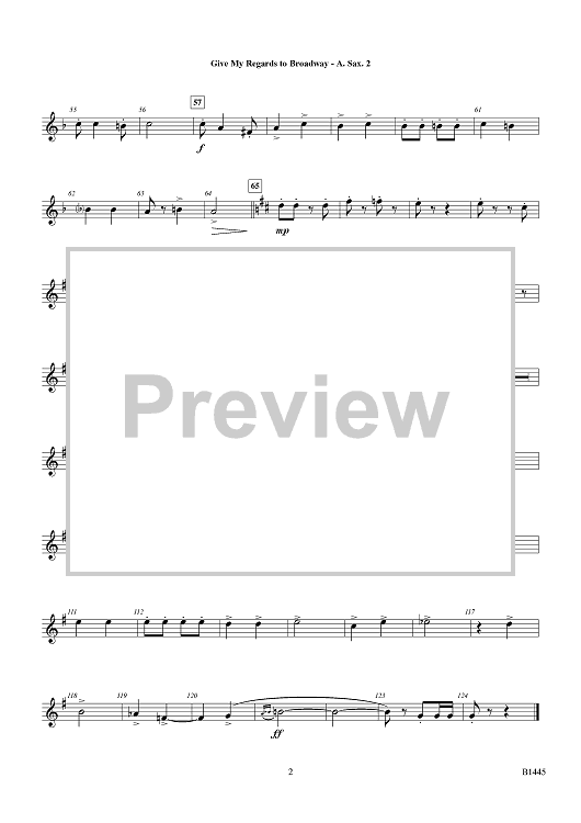 Digital Sheet Music for Give My Regards to Broadway - Eb Alto Sax 2 by George M Cohan, Chris Sharp scored for Young Band; id:415417