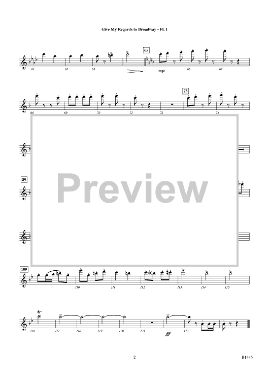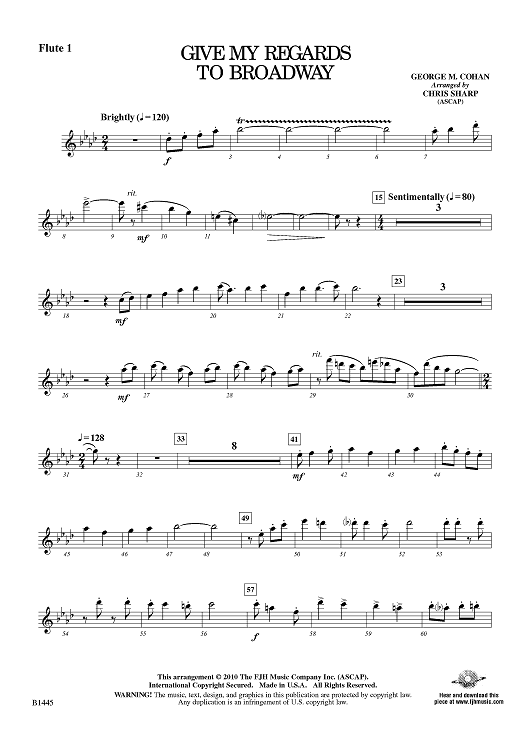 Digital Sheet Music for Give My Regards to Broadway - Flute 1 by George M Cohan, Chris Sharp scored for Young Band; id:415409
