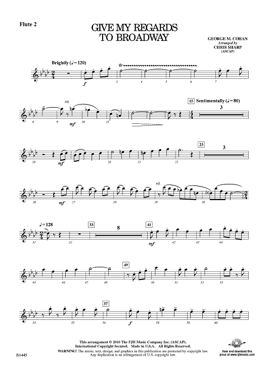 Digital Sheet Music for Give My Regards to Broadway - Flute 2 by George M Cohan, Chris Sharp scored for Young Band; id:415410