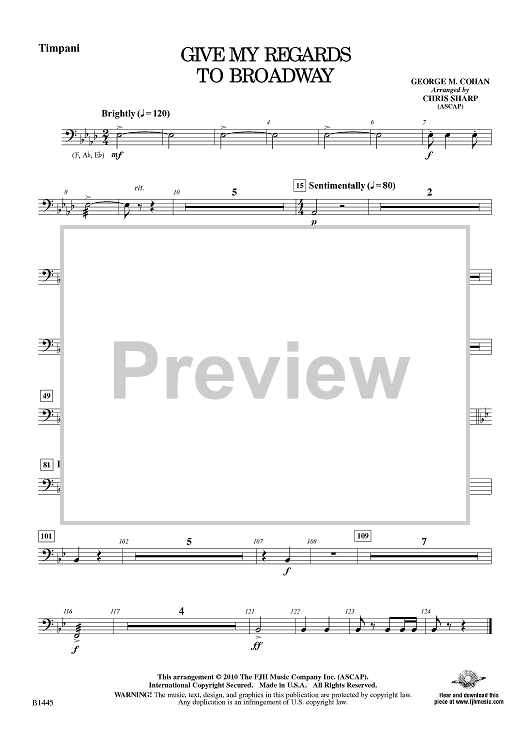 Digital Sheet Music for Give My Regards to Broadway - Timpani by George M Cohan, Chris Sharp scored for Young Band; id:415429