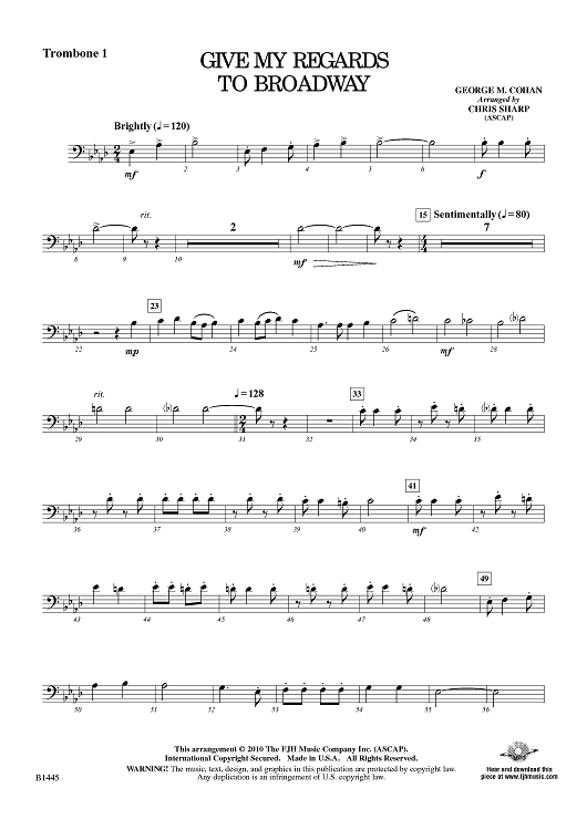 "Give My Regards to Broadway - Trombone 1" Sheet Music by George M Cohan