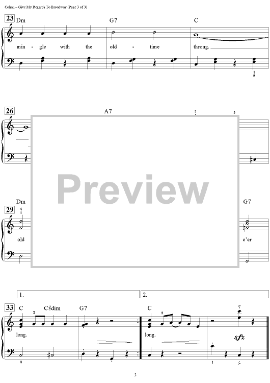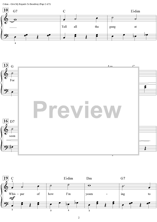 Digital Sheet Music for Give My Regards to Broadway (WWI version) by Dan Coates, George M Cohan scored for Easy Piano/Vocal/Chords; id:456994