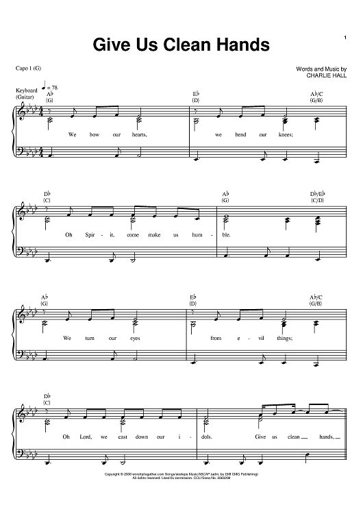 Digital Sheet Music for Give Us Clean Hands by Chris Tomlin, Charlie Hall, Passion Band scored for Piano/Vocal/Chords; id:393765
