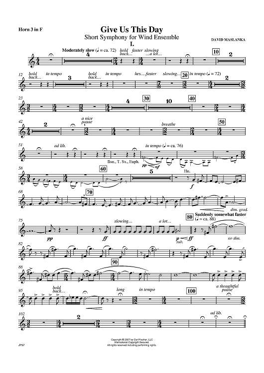 "Give Us This Day - Horn 3" Sheet Music by David Maslanka