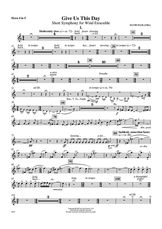 Digital Sheet Music for Give Us This Day - Horn 4 by David Maslanka scored for Concert Band; id:407900