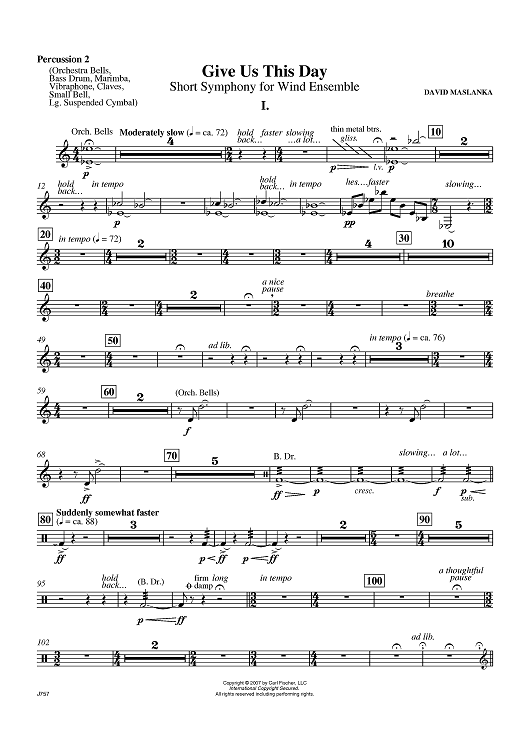 Digital Sheet Music for Give Us This Day - Percussion 2 by David Maslanka scored for Concert Band; id:407911