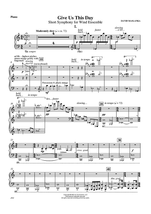 Digital Sheet Music for Give Us This Day - Piano by David Maslanka scored for Concert Band; id:407908
