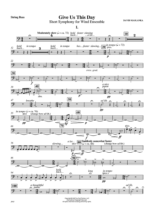 Digital Sheet Music for Give Us This Day - String Bass by David Maslanka scored for Concert Band; id:407907