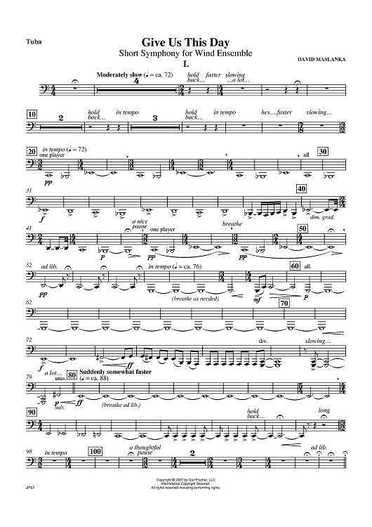 Digital Sheet Music for Give Us This Day - Tuba by David Maslanka scored for Concert Band; id:407906