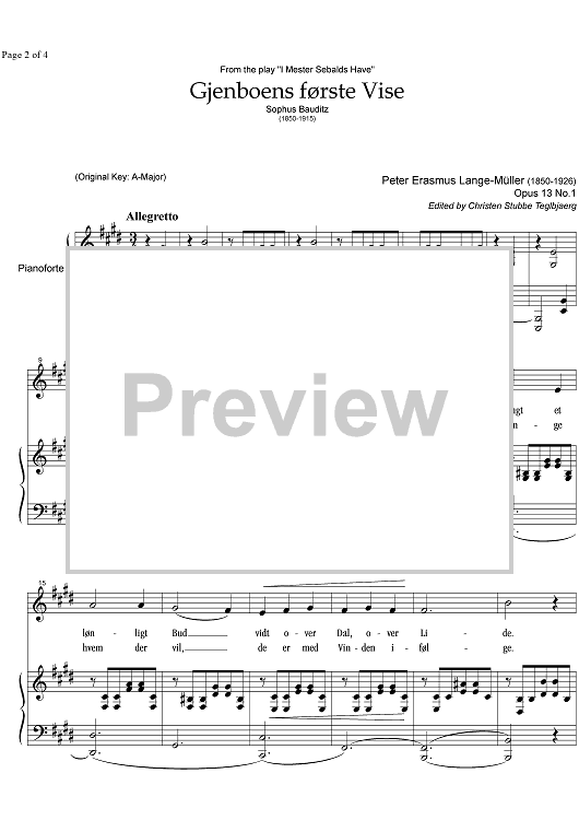 Digital Sheet Music for Gjenboens første Vise by , Peter Erasmus Lange-Müller scored for Alto or Bass/Piano; id:337924