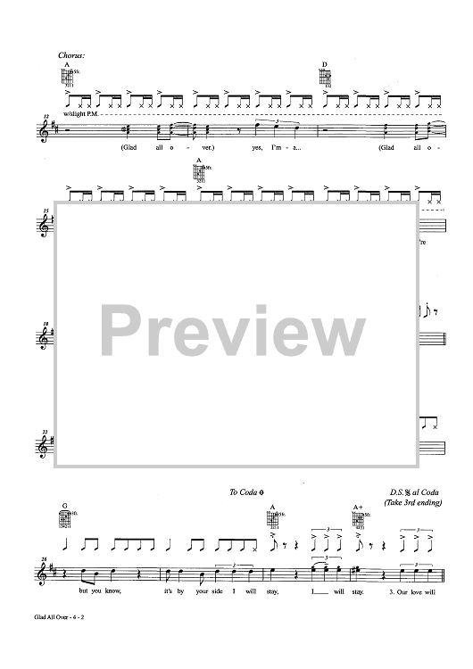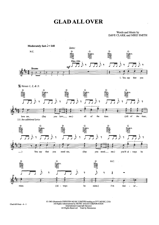 Digital Sheet Music for Glad All Over by Dave Clark, Mike Smith scored for Easy Guitar Tab/Vocal/Chords; id:457181