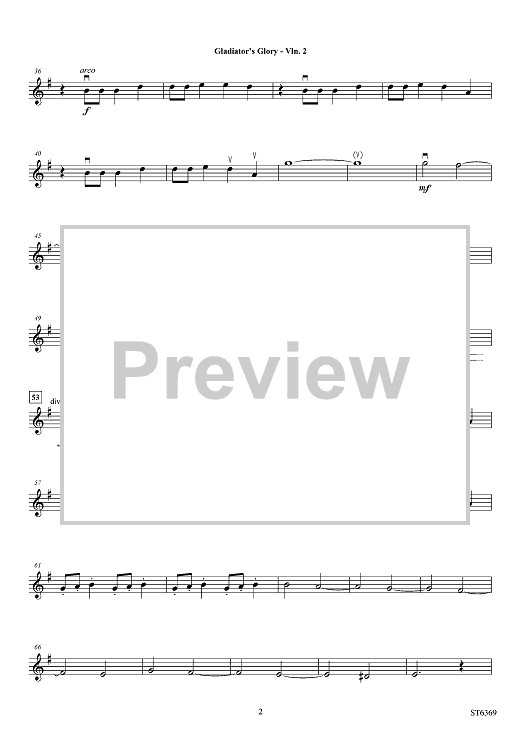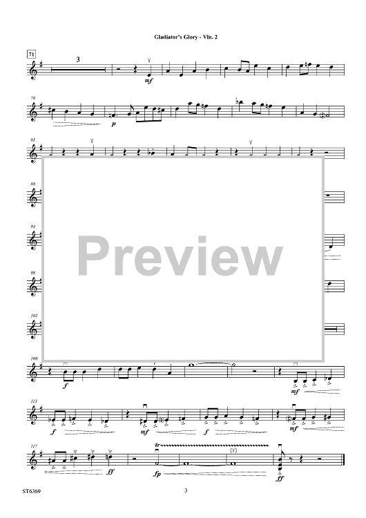 "Gladiator's Glory - Violin 2" Sheet Music by Chris Thomas