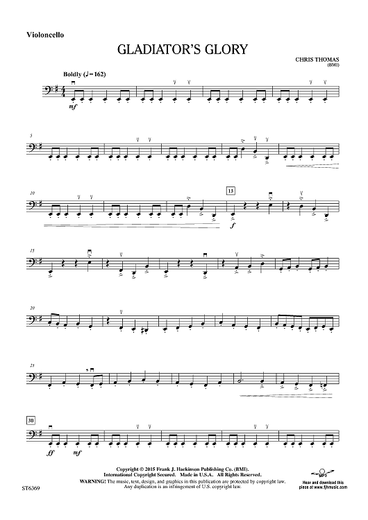 Digital Sheet Music for Gladiator's Glory - Violoncello by Chris Thomas scored for Orchestra; id:455544