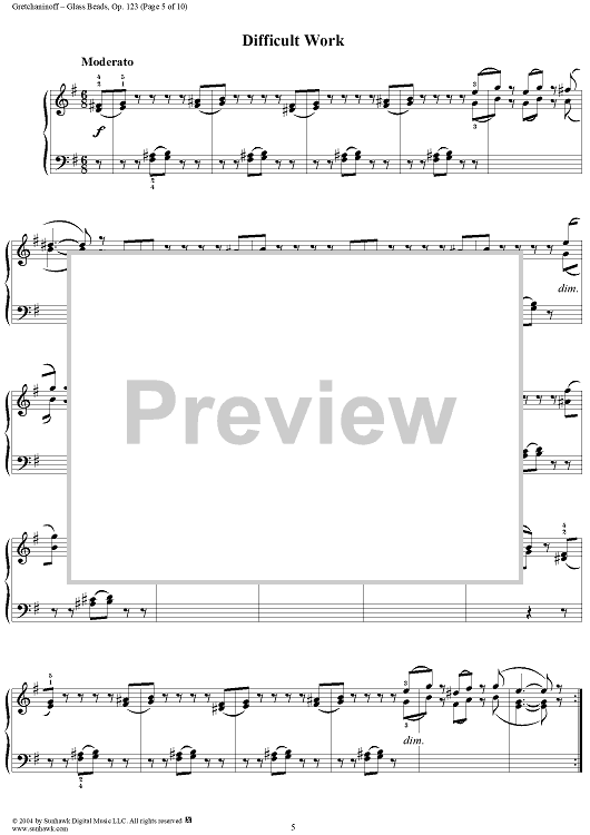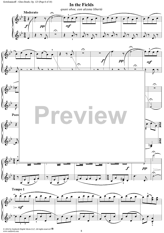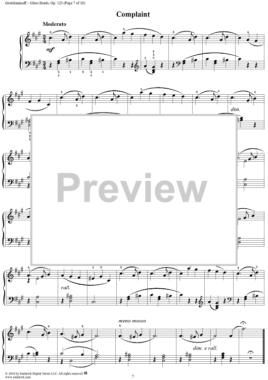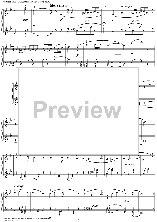 Digital Sheet Music for Glass Beads, Op. 123 by Alexander Gretchaninoff scored for Piano Solo; id:294668