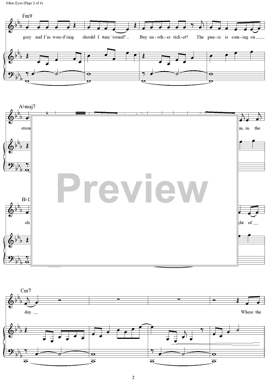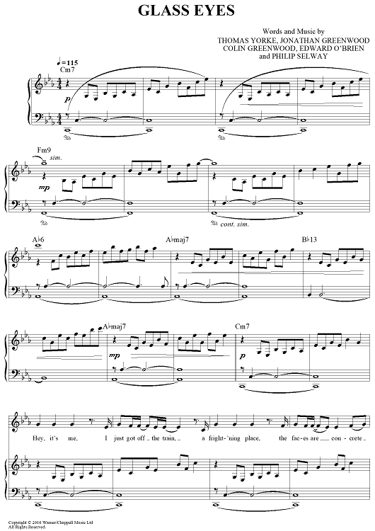 Digital Sheet Music for Glass Eyes by Thomas Yorke, Jonathan Greenwood, Philip Selway, Coz, Edward O'Brien, Radiohead scored for Piano/Vocal/Chords; id:462808